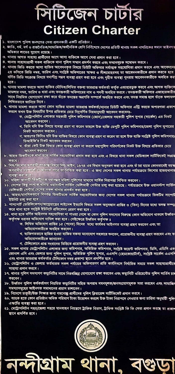 ১। নন্দীগ্রাম থানা জনগণের সেবা প্রদানকারী একটি প্রতিষ্ঠান